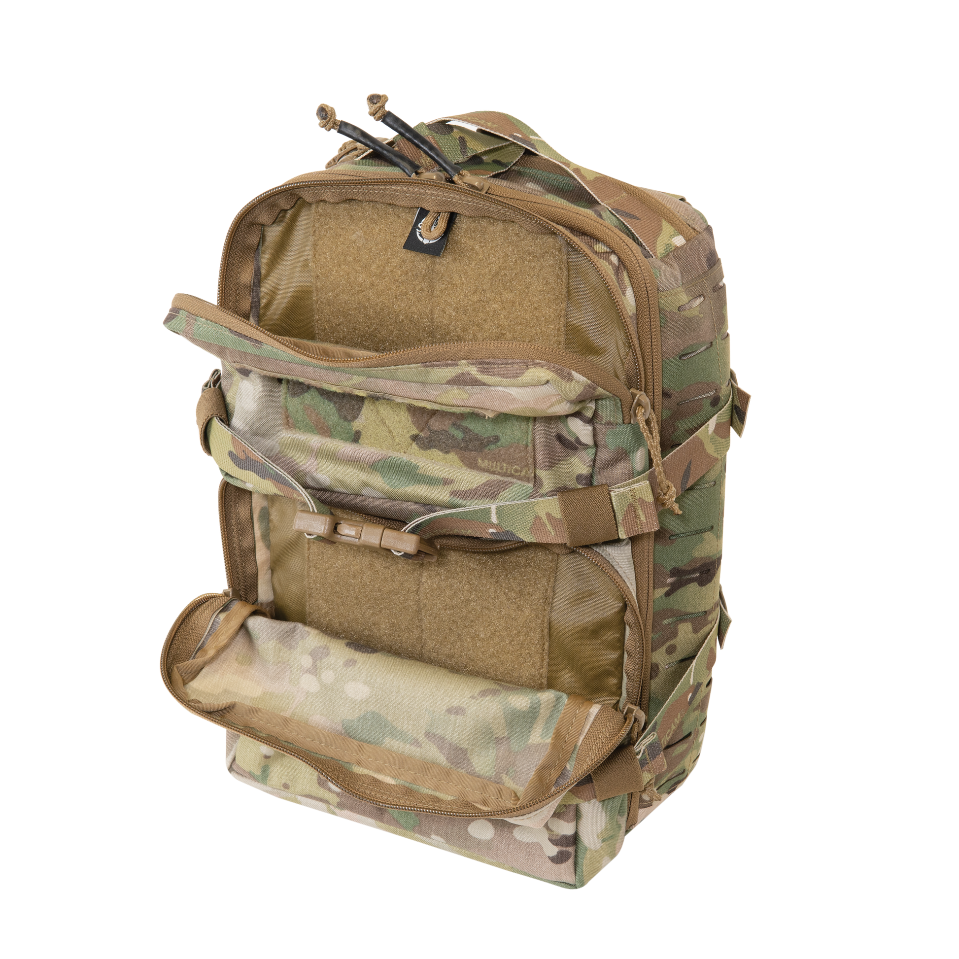The PCP is our take on a 1 Day Assault Pack made to connect directly with a Plate Carrier or Chest Rig, that will hold mission essential equipment within reach. The PCP can also be utilized in a Rucksack as an E&E Bag, a dedicated Medical Bag, Radio Pack and many other possibilities. The PCP features a main compartment with a full length 'clamshell' zipper to fully layout the pack with Loop Velcro on both sides for attached medical or organizational inserts. There is also a flat pocket for hydration bladders which can double as a Tool Sheath with the Tegris Tool Sheath add on available. On the front face there are two General Purpose Pouches for tools, magazines and other items with the top one having a Velcro ID Field. Both feature Velcro Loop lining for organizational inserts and both have Tie Off Points for Sensitive (or just expensive) Equipment. The sides of the PCP have two rows of MOLLE for additional pouches to be added as needed as well as two compression straps that can be removed if not desired.