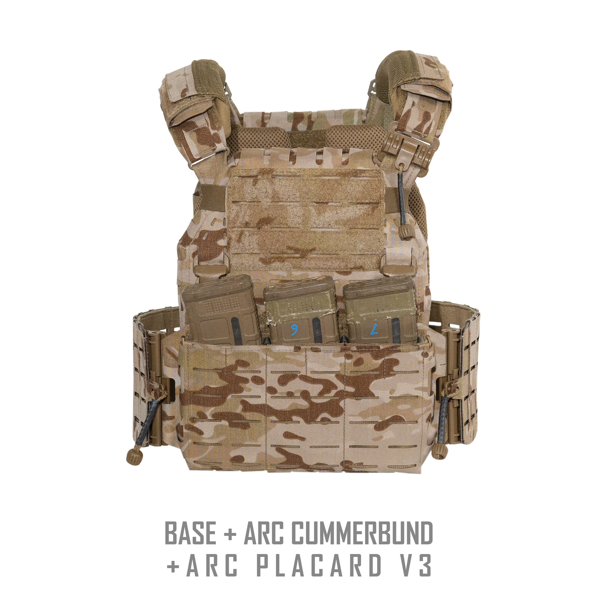 The ARC Carrier V2 stands as a best in class overt combat arms plate carrier system and was born from a lack of options on the market and a lack feature rich load bearing platforms that would suit the needs of Infantrymen, SOF and SWAT teams alike. The ARC Carrier is designed around providing innovative features, a comfortable chassis, and uninhibited modularity so it can be set up for your particular mission. The ARC Carrier features our innovative Spider Tab System that allows different plate size, shape and thickness to be used and this doubles as fantastic cable management for radios and their PTTs and antennas. On the inner side our StratusFit™ Pads provide comfort and ventilation while our ARC Shoulder Pads offer comfort to bear the load. The front of the carrier can accept most industry standard placards and the rear plate bag can accept both 'lash on' and Velcro style cummerbunds.